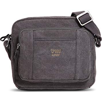 A classic A5 sized lightweight super strong canvas bag with leather trimmings and detailed zip pullers. Externally it has an adjustable canvas shoulder strap with stylish and functional, brass plated buckles, secure zip pocket at the back, quick access pocket on the front panel, one Front zip pocket and one main spacious zip compartment.