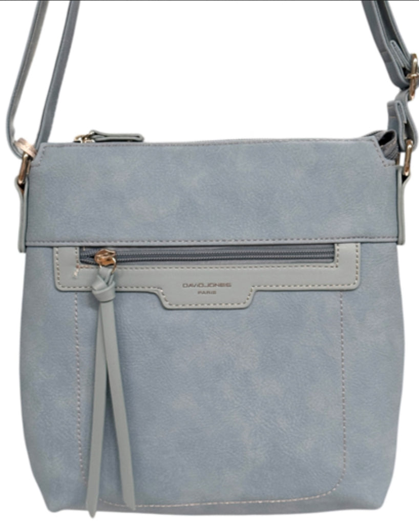 David Jones cross body bag with adjustable strap, it has a main zipped compartment with an inside slip and zip compartment. There is also a zip pocket on the front and back.