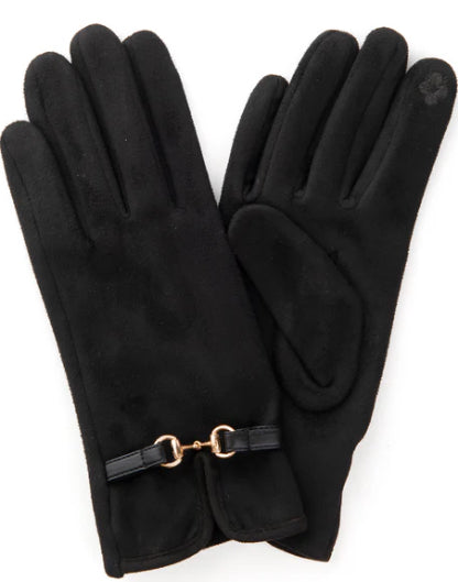 Lovely suedette glove in a range of 4 colours, with a smart snaffle detail in matching colour. A screen touch finger means you can use a mobile phone whilst wearing.