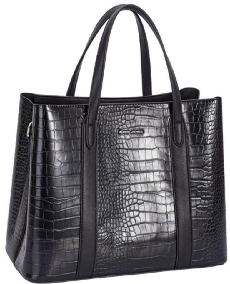 Fabulously classy mock crocodile grab handle bag, with the option of an adjustable, detachable crossbody strap. There are 2 magnetic dot pockets either side of the main internal top zip. Internally there is a zipped pocket and an open pocket.