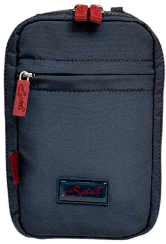 A versatile compact phone/crossbody bag, with a zipped top which opens with a gusset for easy internal access.  There is a front zipped pocket and an open pocket at the rear. Inside there are 2 open compartments, separated by an open pocket, a velcroed pocket and 4 card holders.