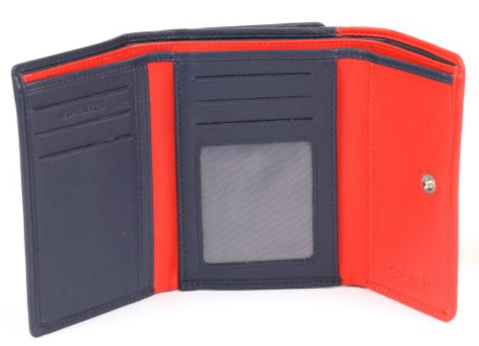 Soft leather wallet purse with 2 note compartments, 6 card slots, an ID/photo window and 3 slip pockets. There is a separate zip compartment for change.